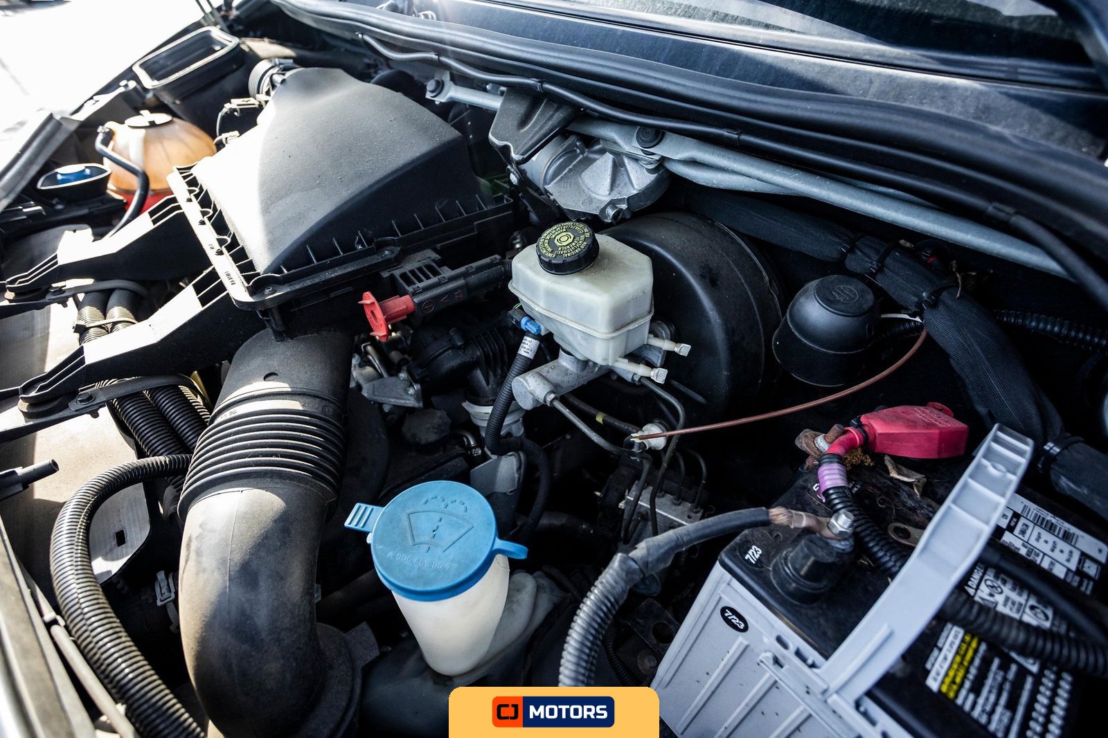 Power is supplied by a 3.0-liter turbodiesel V6 engine rated at 188 horsepower and 325 lb-ft of torque. Output is directed to the rear wheels through a five-speed automatic transmission. Factory driver assistance features include Crosswind Assist technology and cruise control. The TPMS warning light is illuminated, as noted during the post-repossession inspection.