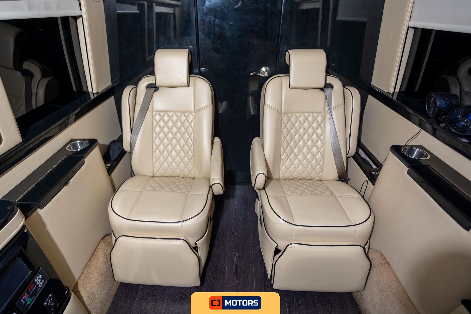 - 2 captain’s chairs with partition, lighting, and window shade controls