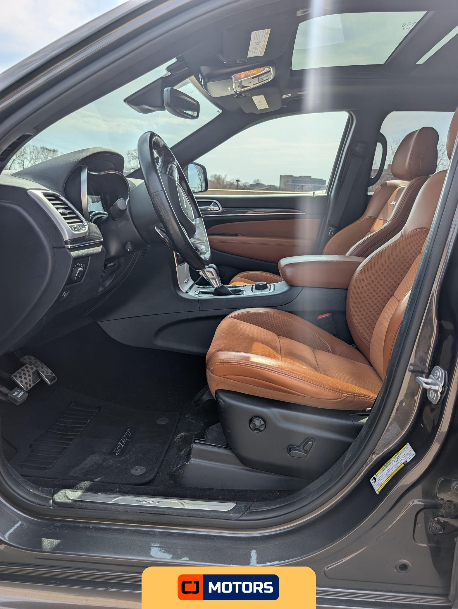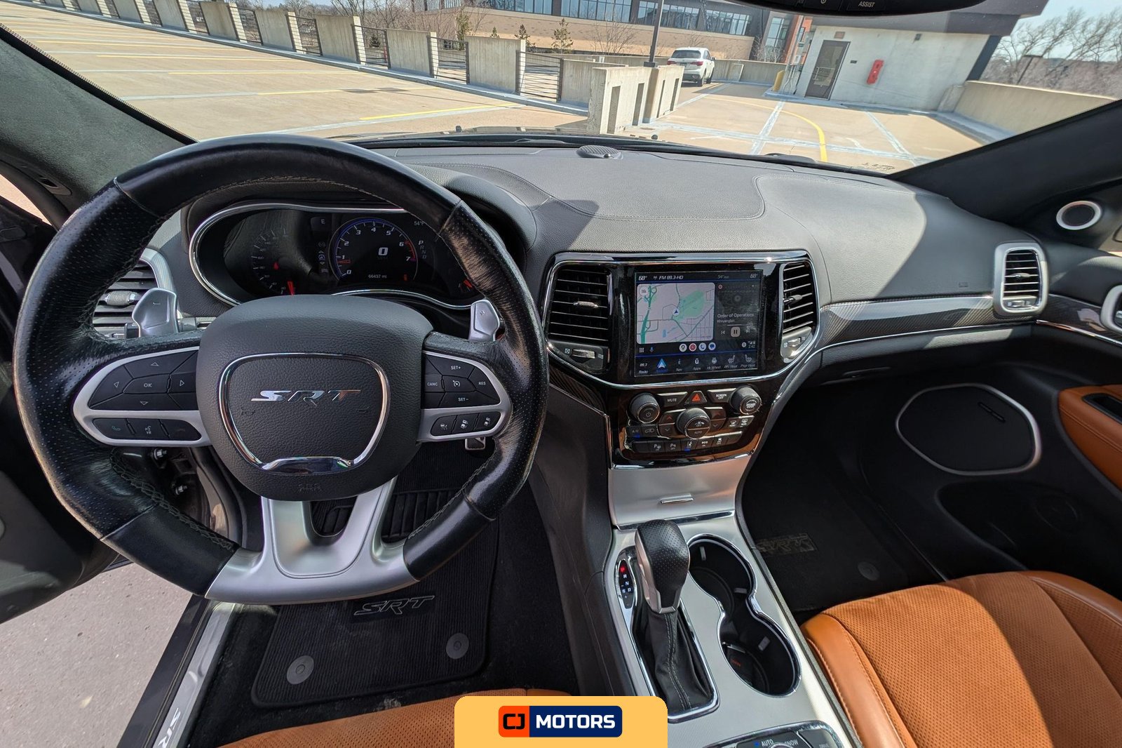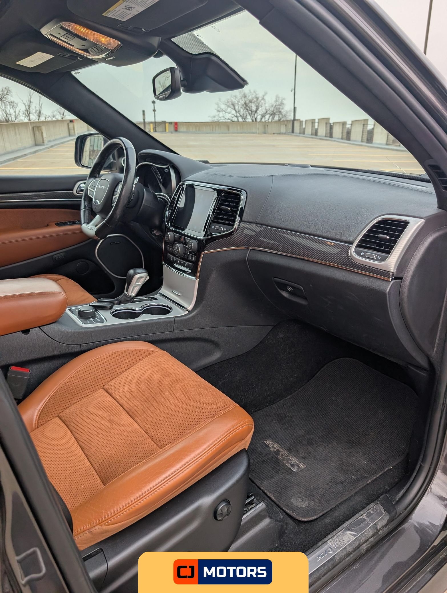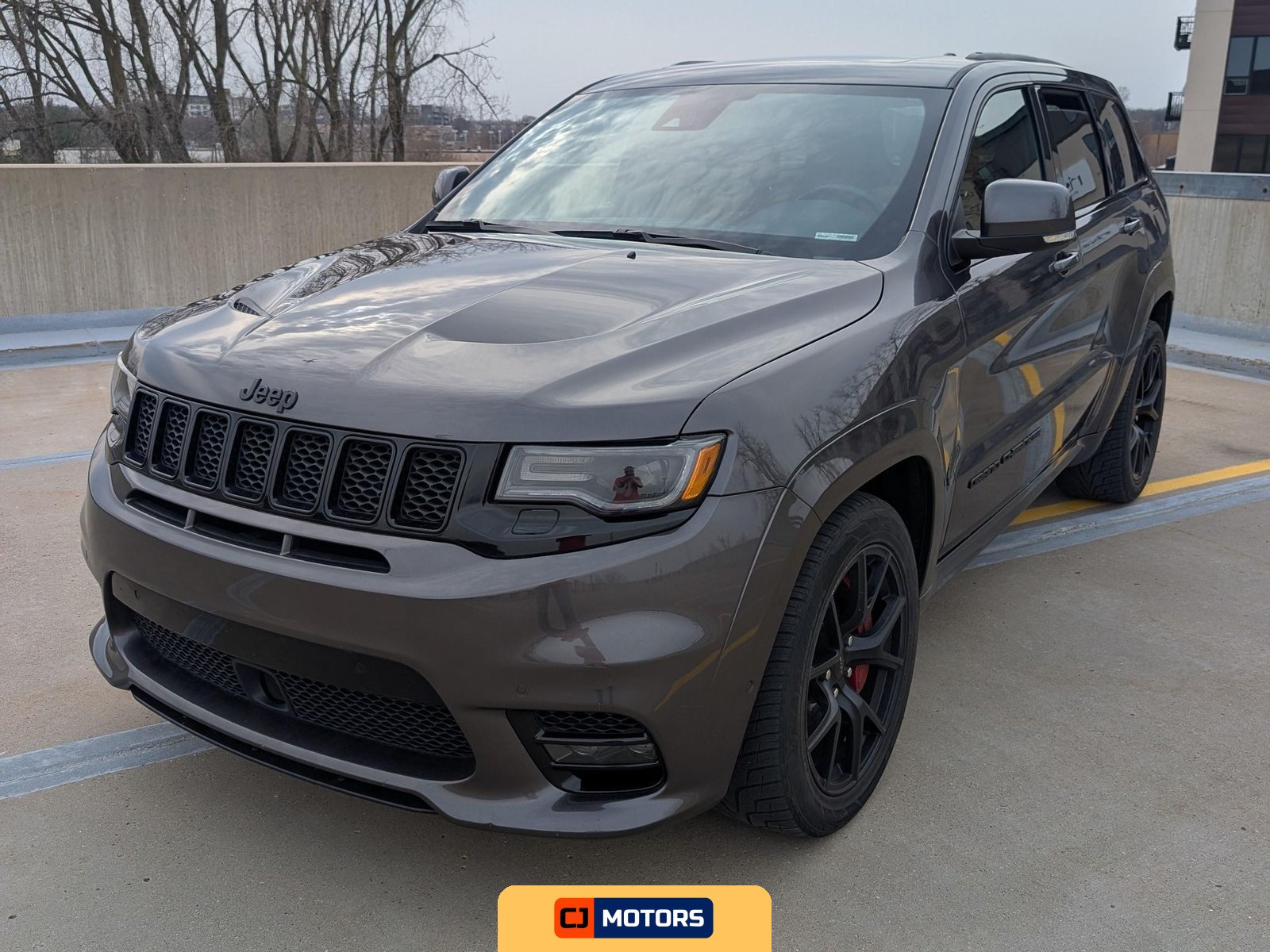 This is a 2019 Jeep Grand Cherokee SRT finished in Granite Crystal Metallic over a black and Sepia interior. It is offered as a repossessed asset and has undergone a post-repossession inspection.
