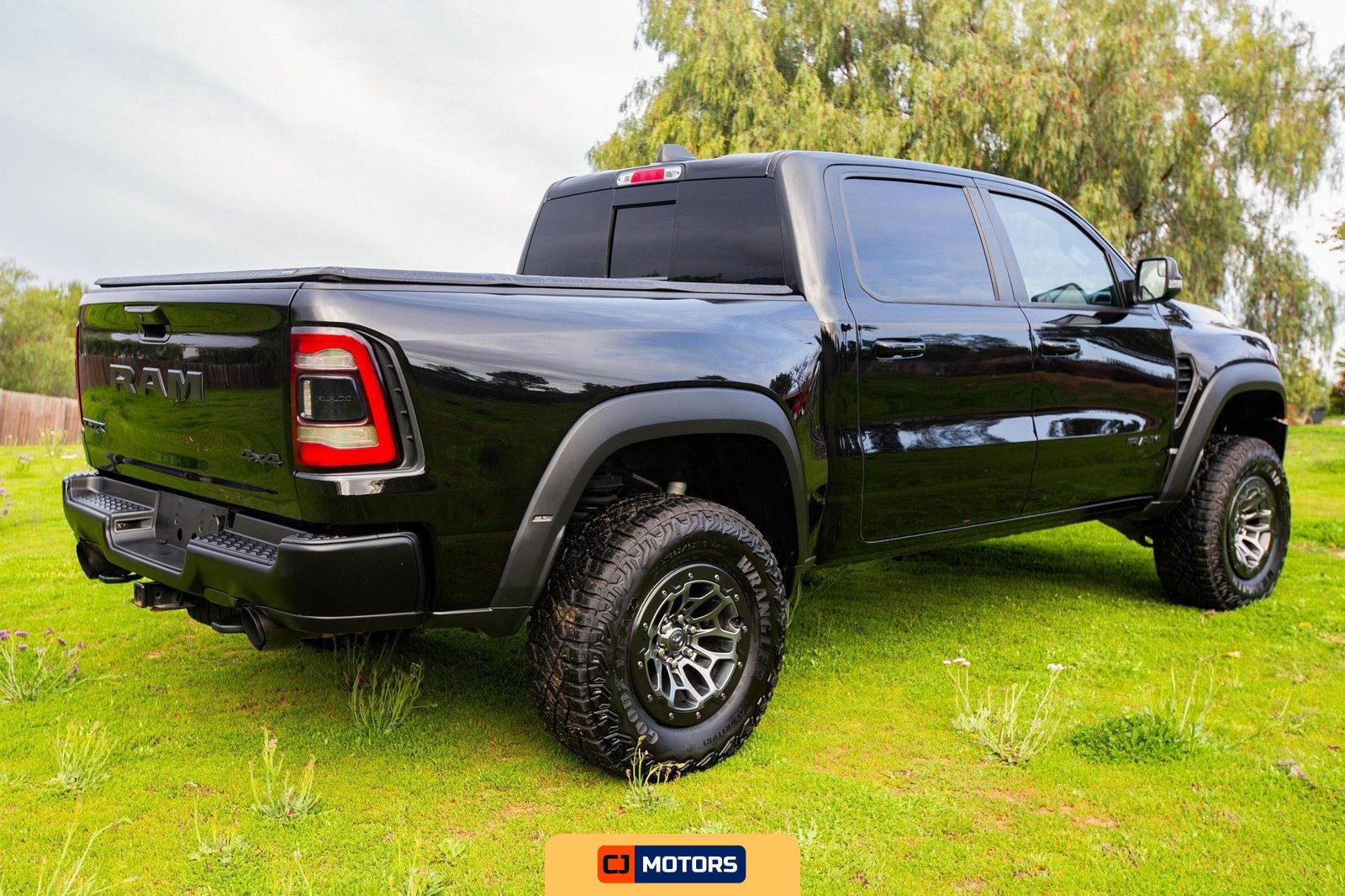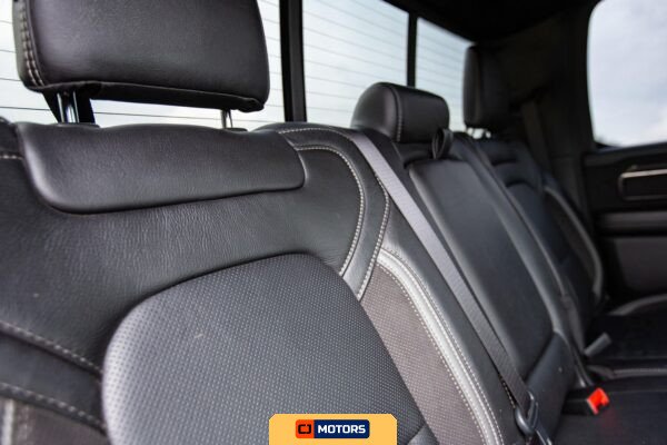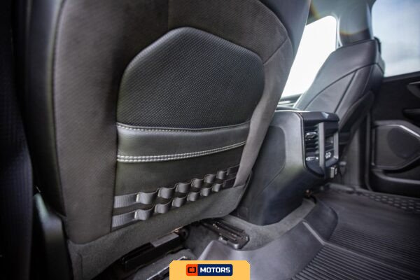 The chassis features a strengthened frame and long-travel suspension system with active-performance shock absorbers equipped with adaptive damping. High-performance brakes are fitted to manage the vehicle’s power output and weight. The Bed Utility Group includes a deployable bed step by Mopar, four adjustable cargo tie-down hooks by Mopar, spray-in bedliner by Mopar, and pick-up box LED lighting. An Oedro tonneau bed cover has been added as a modification.