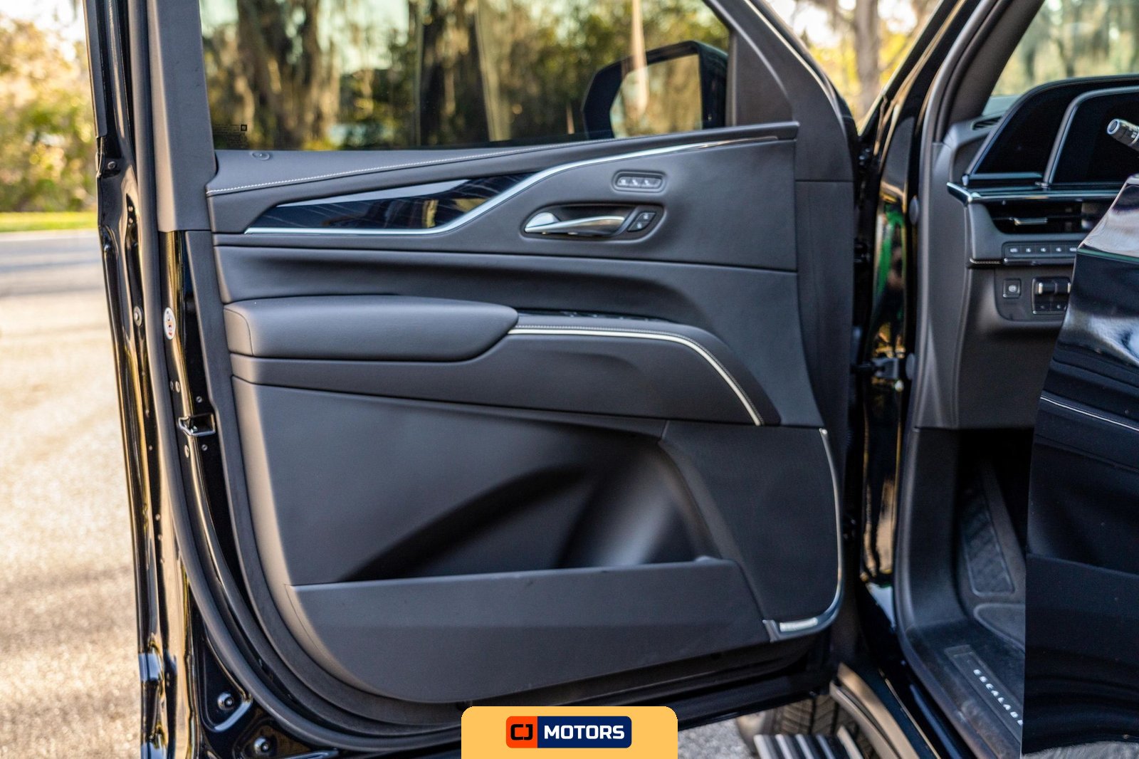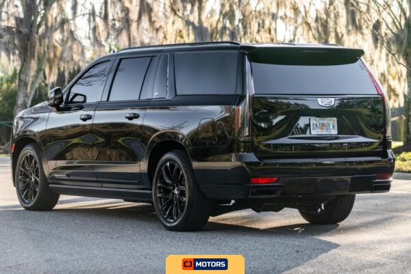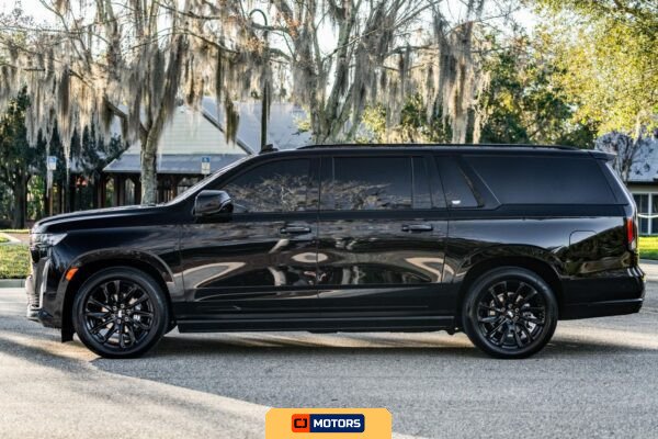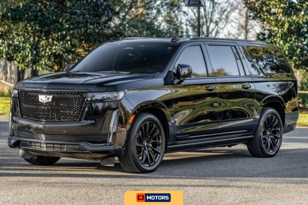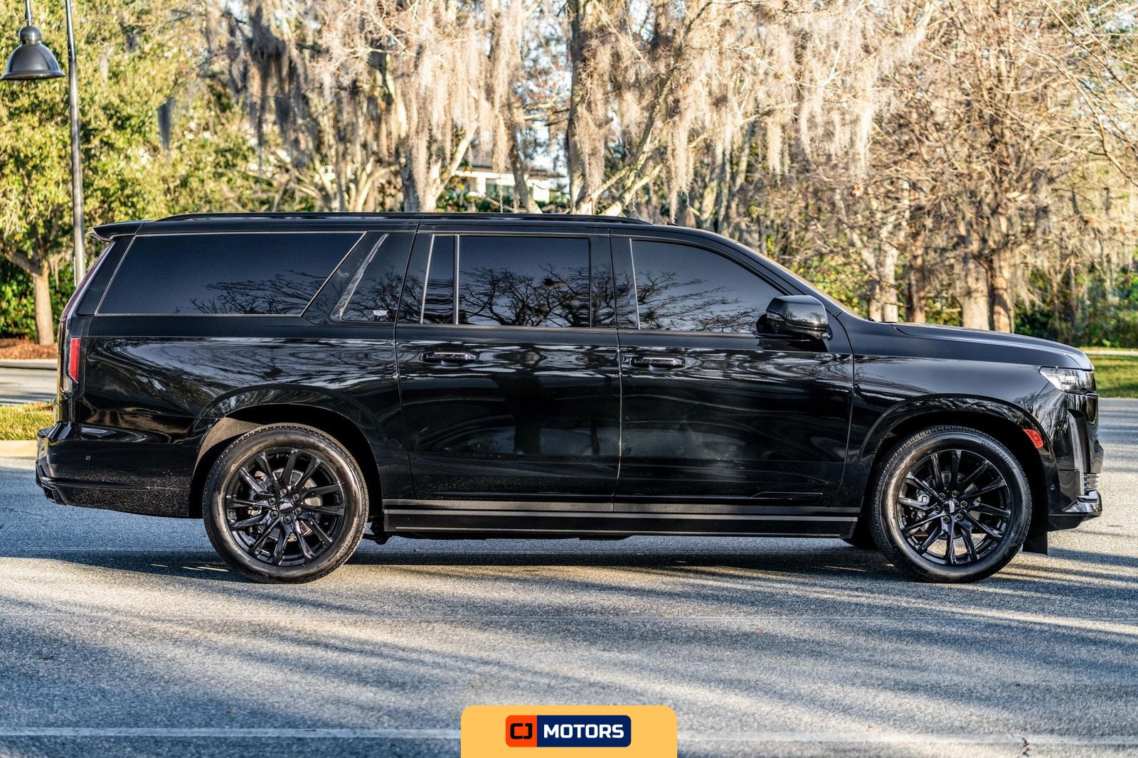 The 2023 Cadillac Escalade ESV represents the fifth generation of Cadillac’s flagship full-size luxury SUV, introduced for the 2021 model year. The ESV designation denotes the extended-wheelbase variant, providing additional cargo capacity and enhanced third-row passenger space compared to the standard-length model. This example features the Sport configuration with four-wheel-drive capability, finished in Black Raven exterior paint over a Jet Black interior.