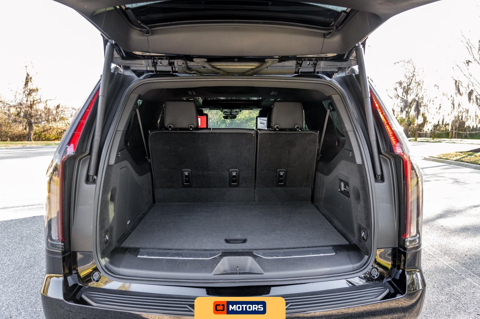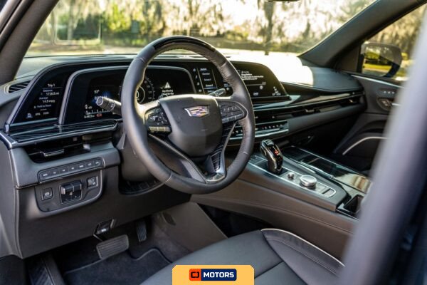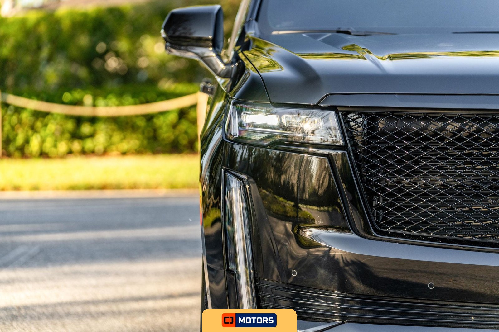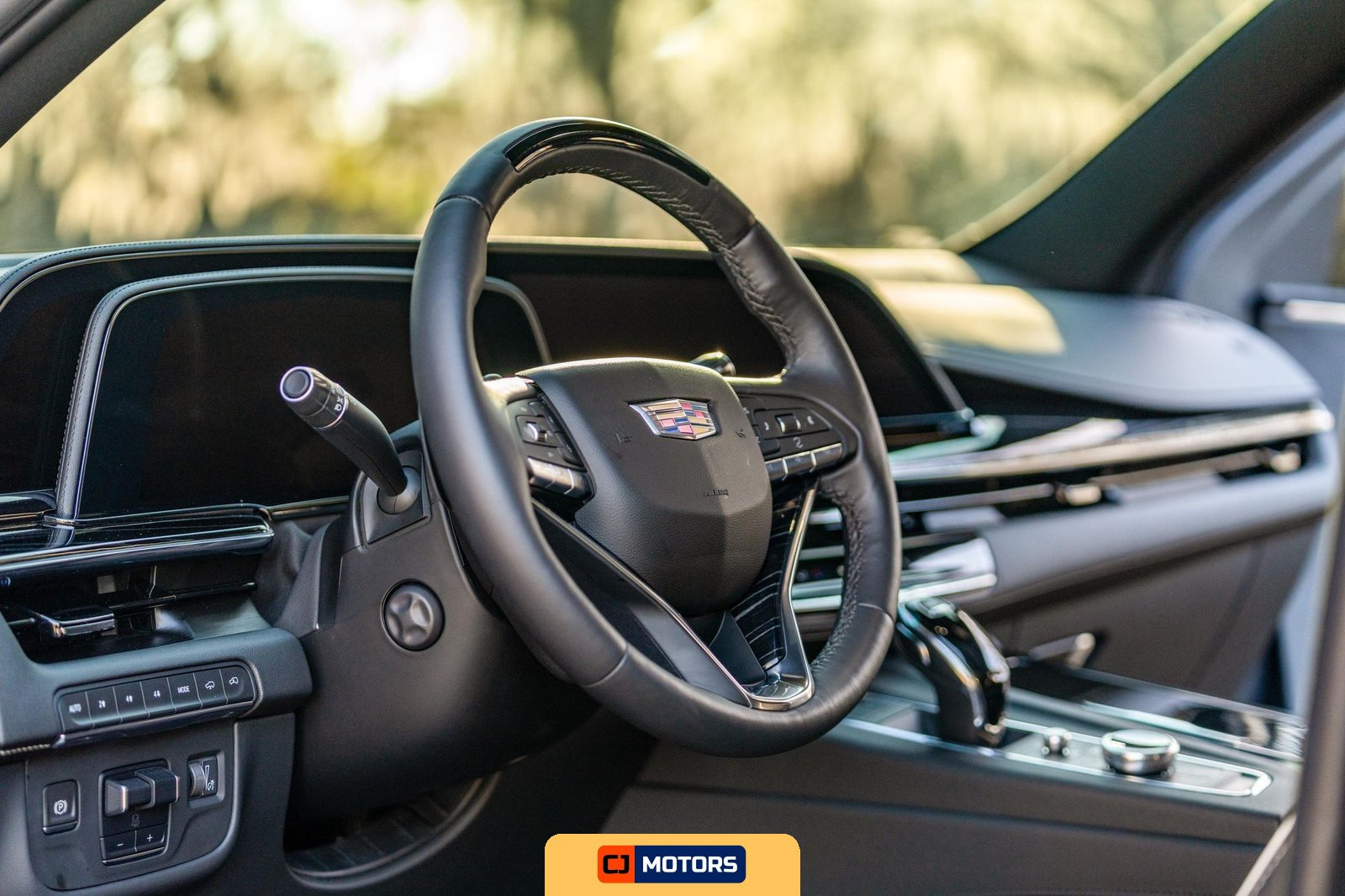 The 2023 Cadillac Escalade ESV represents the fifth generation of Cadillac’s flagship full-size luxury SUV, introduced for the 2021 model year. The ESV designation denotes the extended-wheelbase variant, providing additional cargo capacity and enhanced third-row passenger space compared to the standard-length model. This example features the Sport configuration with four-wheel-drive capability, finished in Black Raven exterior paint over a Jet Black interior.