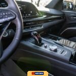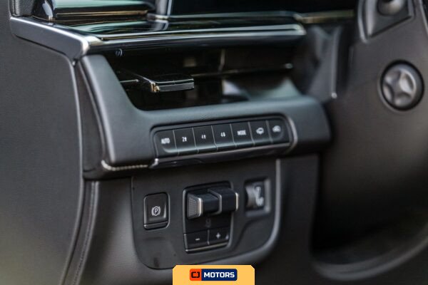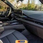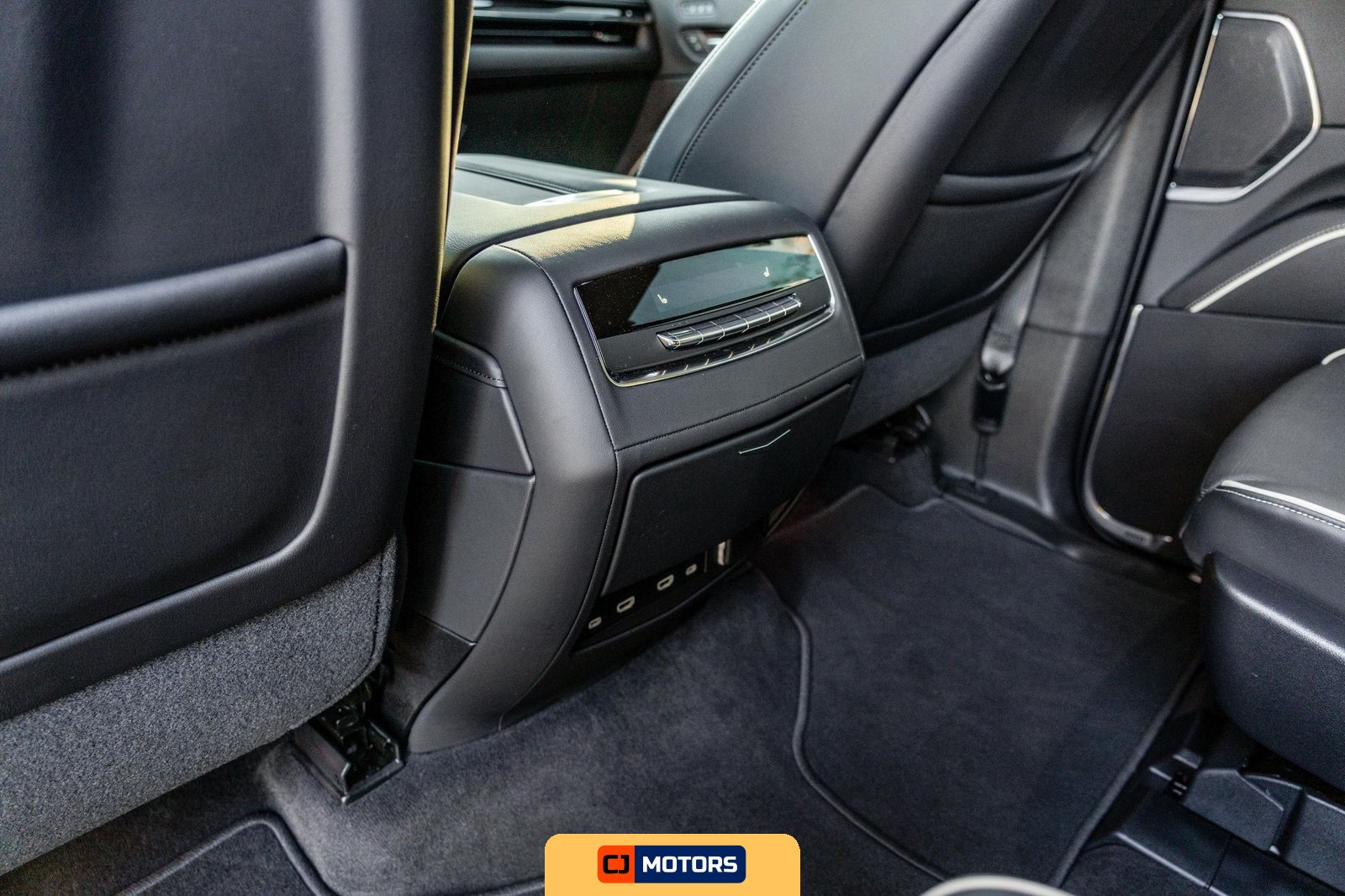 Technology features include a 14.2-inch digital gauge cluster, a 16.9-inch infotainment system, and a head-up display. The vehicle is equipped with Super Cruise semi-autonomous driving capability, though a subscription is required for activation. Wireless Android Auto and Apple CarPlay integration, wireless charging, and a navigation system are included. The AKG Studio 19-speaker audio system and rear seat entertainment system provide multimedia capabilities. A rear camera mirror enhances visibility.