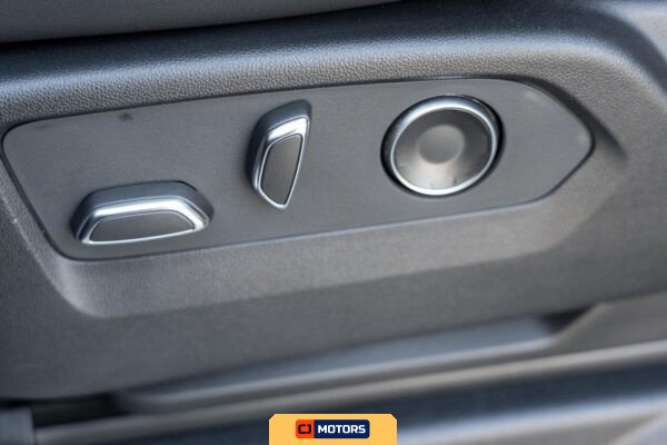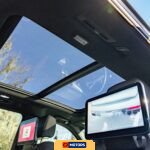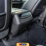 The interior is configured with Mulan leather upholstery across three rows of seating. The front seats feature heating, ventilation, and power adjustment. The second row consists of heated captain’s chairs, while the third row provides additional passenger capacity. Tri-zone automatic climate control allows independent temperature settings. The heated steering wheel, illuminated sill plates, and soft-close cinching doors are part of the Touring Package.