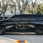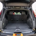 Notable factory equipment identified in the inspection includes the Onyx Package, Touring Package, and Heavy-Duty Trailering Package. Additional features include 22-inch wheels, Magnetic Ride Control, air ride adaptive suspension, an electronic limited-slip differential, a cat-back performance exhaust, a panoramic sunroof, Mulan leather upholstery, heated and ventilated front seats, heated second-row captain’s chairs, a heated steering wheel, third-row seating, Super Cruise capabilities, a 16.9-inch infotainment system, an AKG Studio 19-speaker audio system, and a rear seat entertainment system.