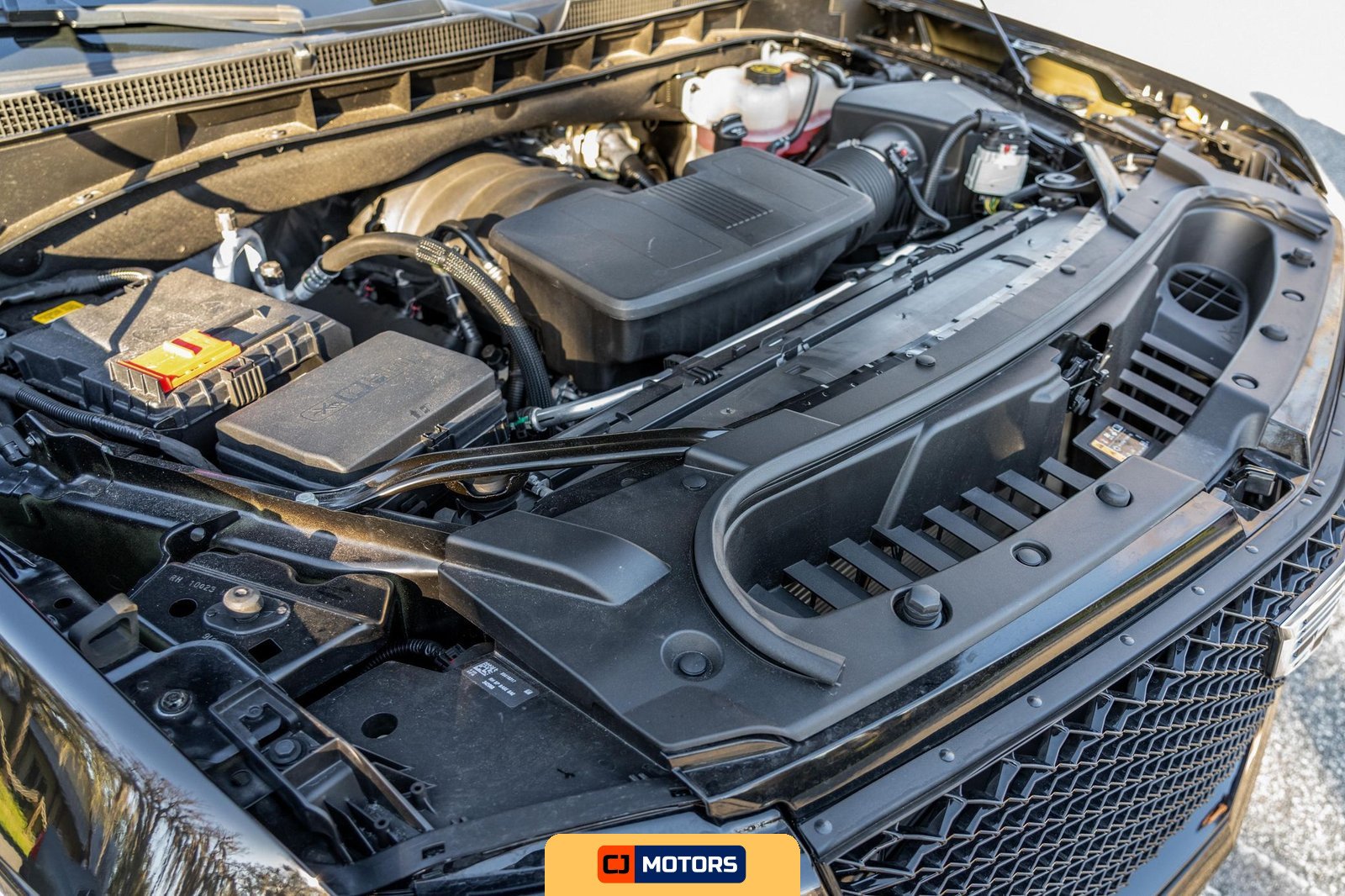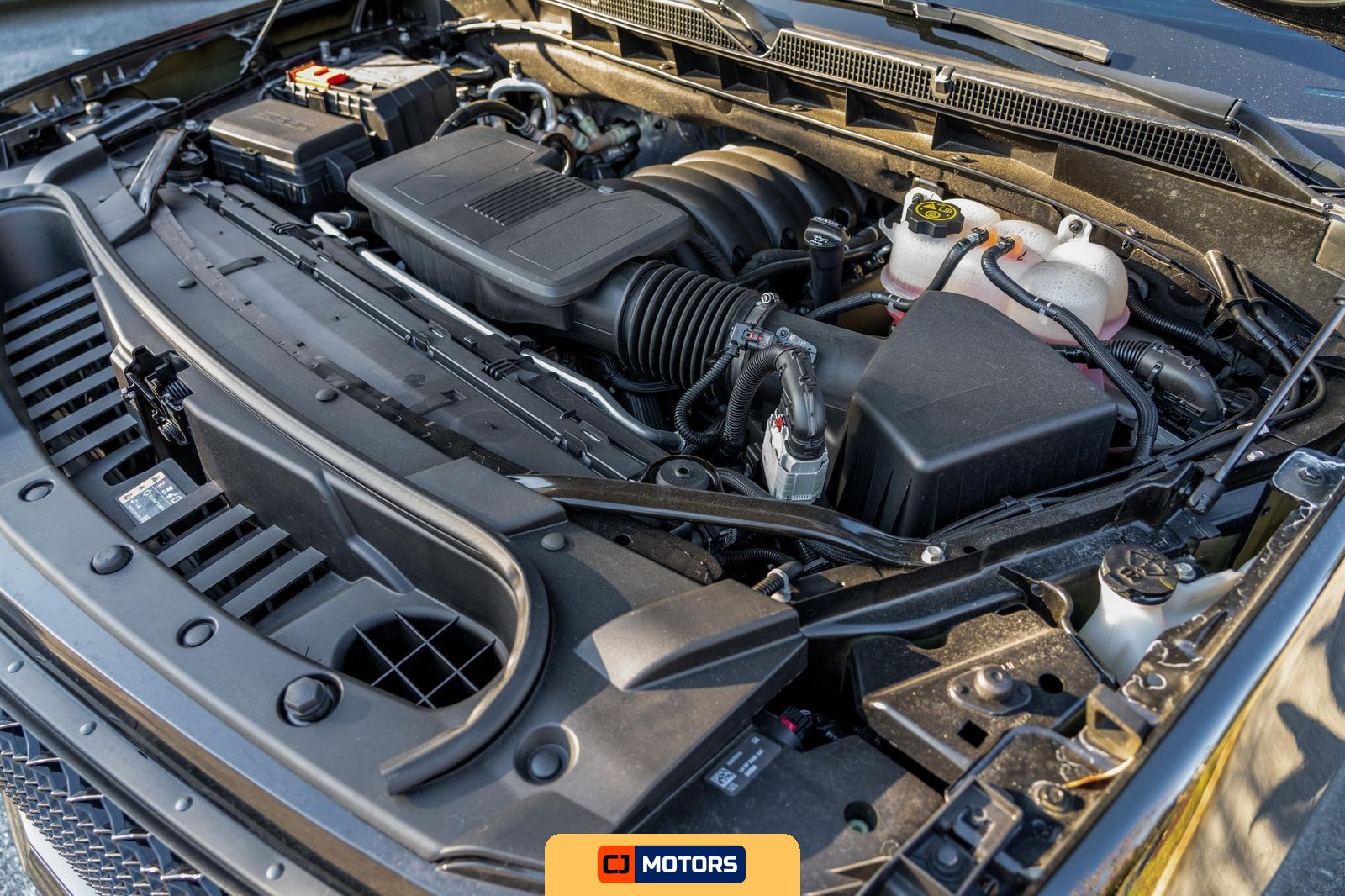 Power is provided by a 6.2-liter V8 engine producing 420 horsepower and 460 lb-ft of torque. The 10-speed automatic transmission routes power through a two-speed transfer case to all four wheels. The chassis features Magnetic Ride Control and air ride adaptive suspension from the Touring Package, along with an electronic limited-slip differential. A cat-back performance exhaust is installed from the factory. The Heavy-Duty Trailering Package adds an auxiliary trailer camera, trailer tire pressure monitor system, and an extra-capacity cooling system.